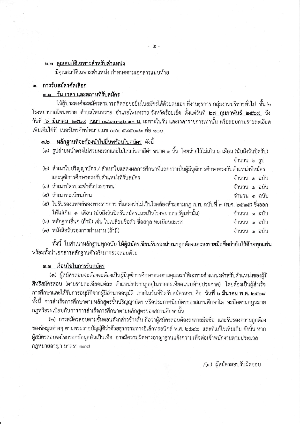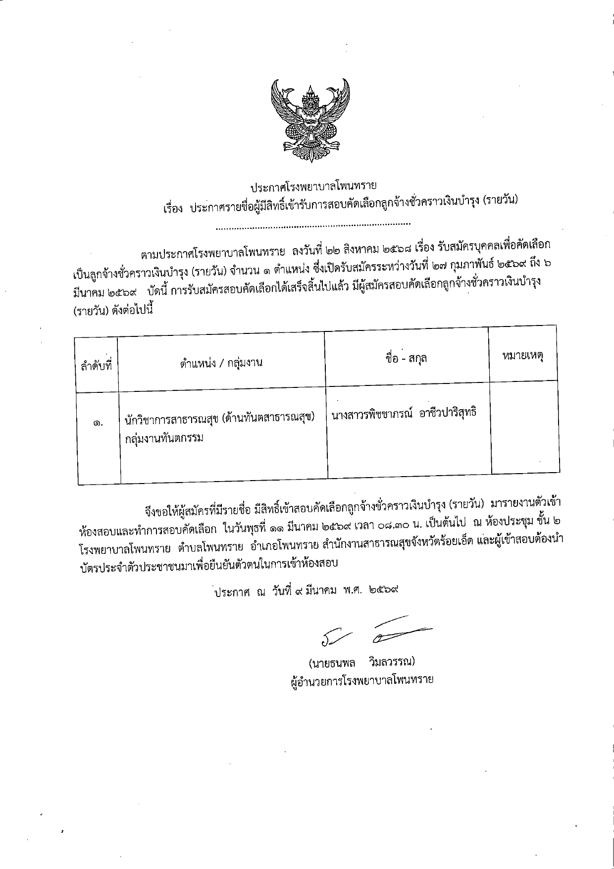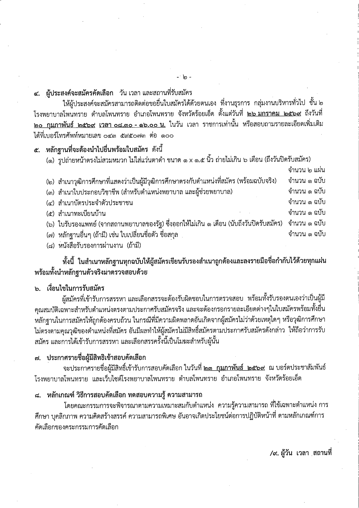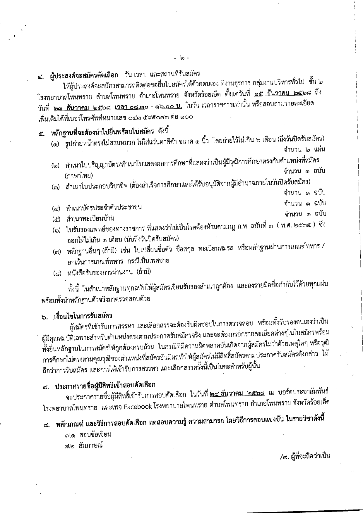 โรงพยาบาลโพนทราย มีความประสงค์จะรับสมัครบุคคลทั่วไป เพื่อคัดเลือกเป็นลูกจ้างชั่วคราว