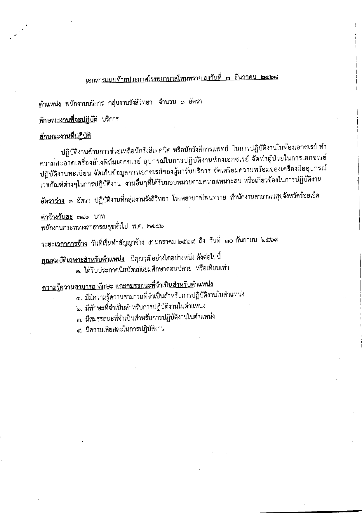 ตำแหน่ง พนักงานบริการ กลุ่มงานรังสีวิทยา จำนวน 1 อัตรา