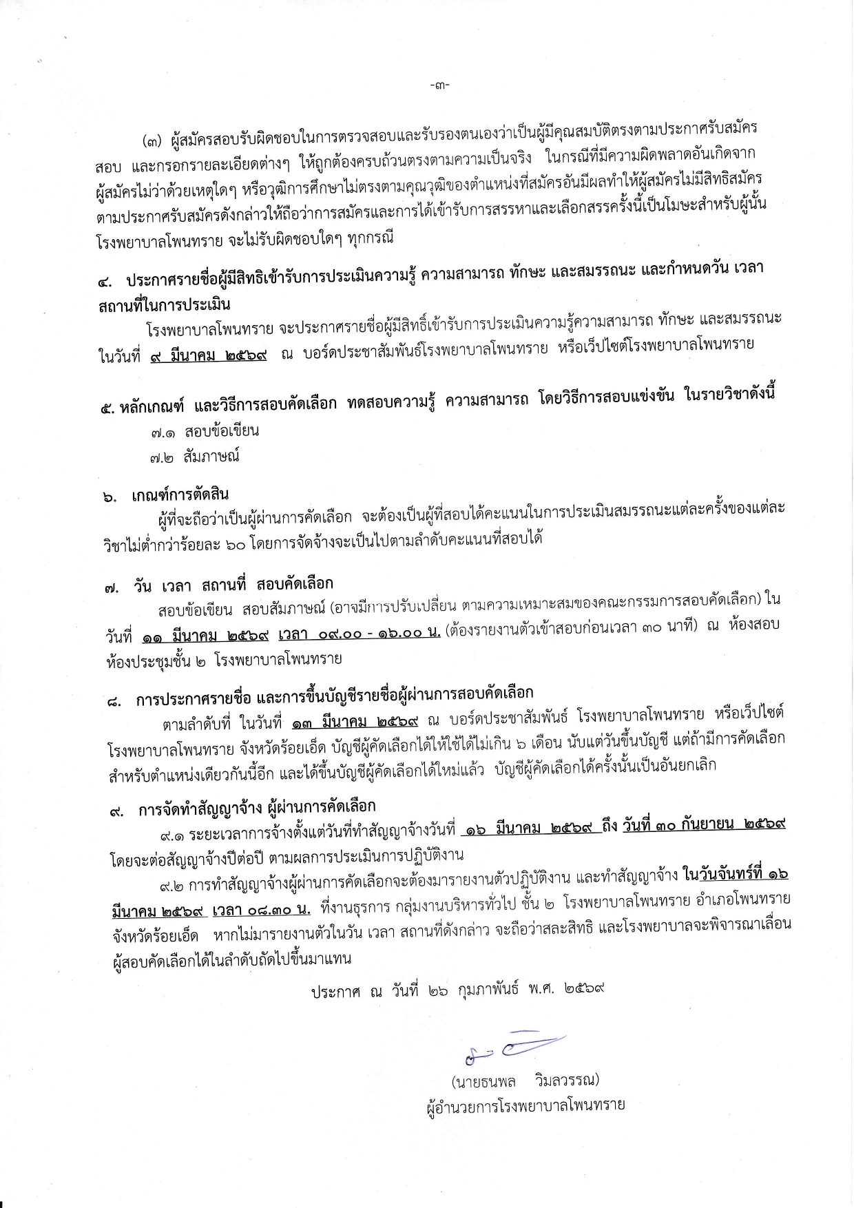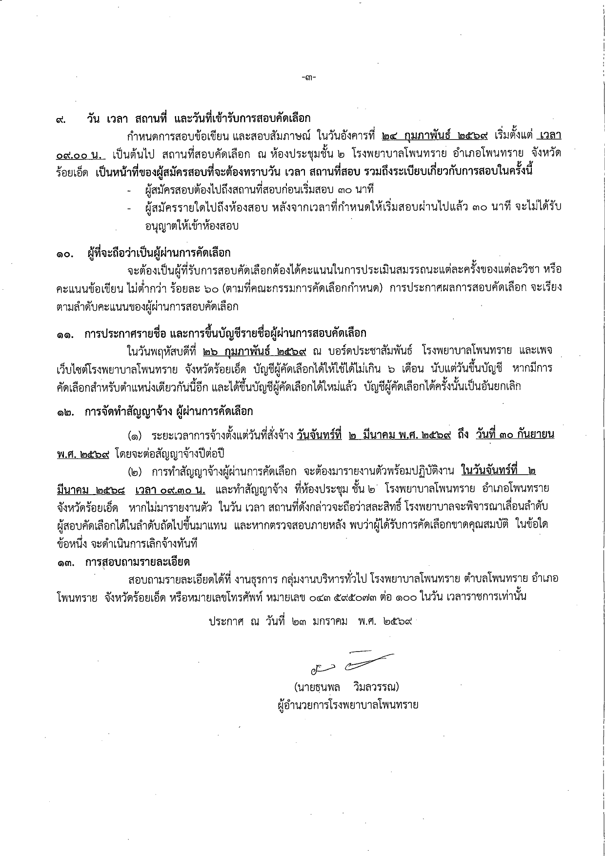 ประกาศโรงพยาบาลโพนทราย