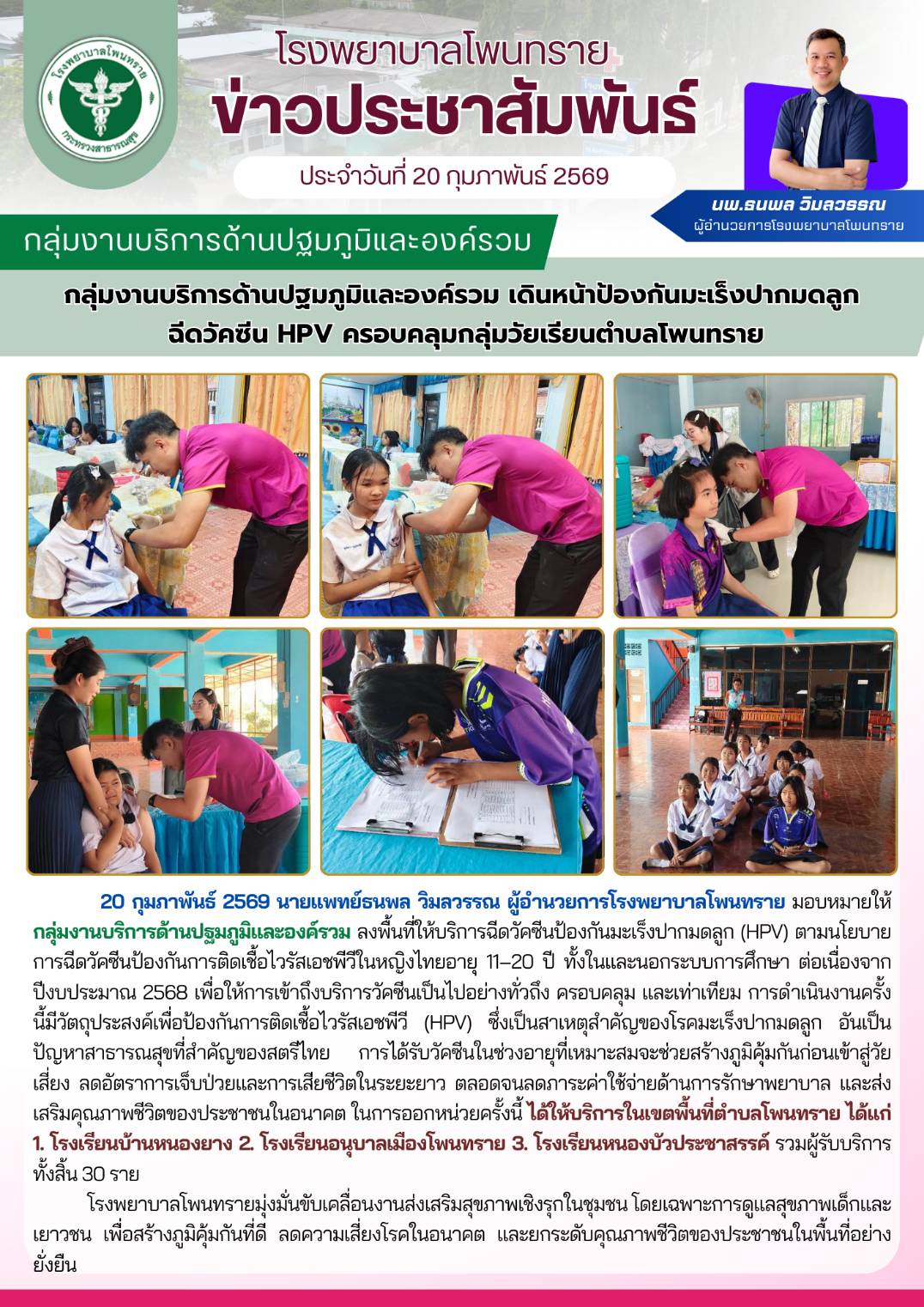 | ชื่อหน่วยงาน: | โรงพยาบาลโพนทราย |