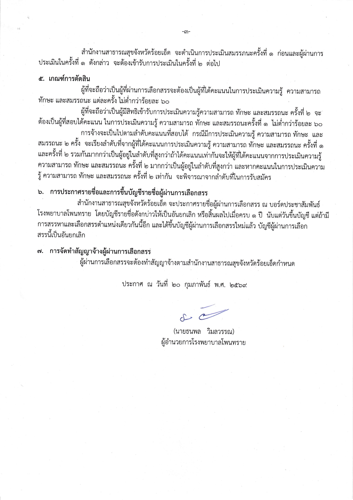 มาปฏิบัติงานที่โรงพยาบาลโพนทราย จังหวัดร้อยเอ็ด โดยอาศัยอำนาจตามหลักเกณฑ์ วิธีการ และเงื่อนไขการจ่ายเงิน