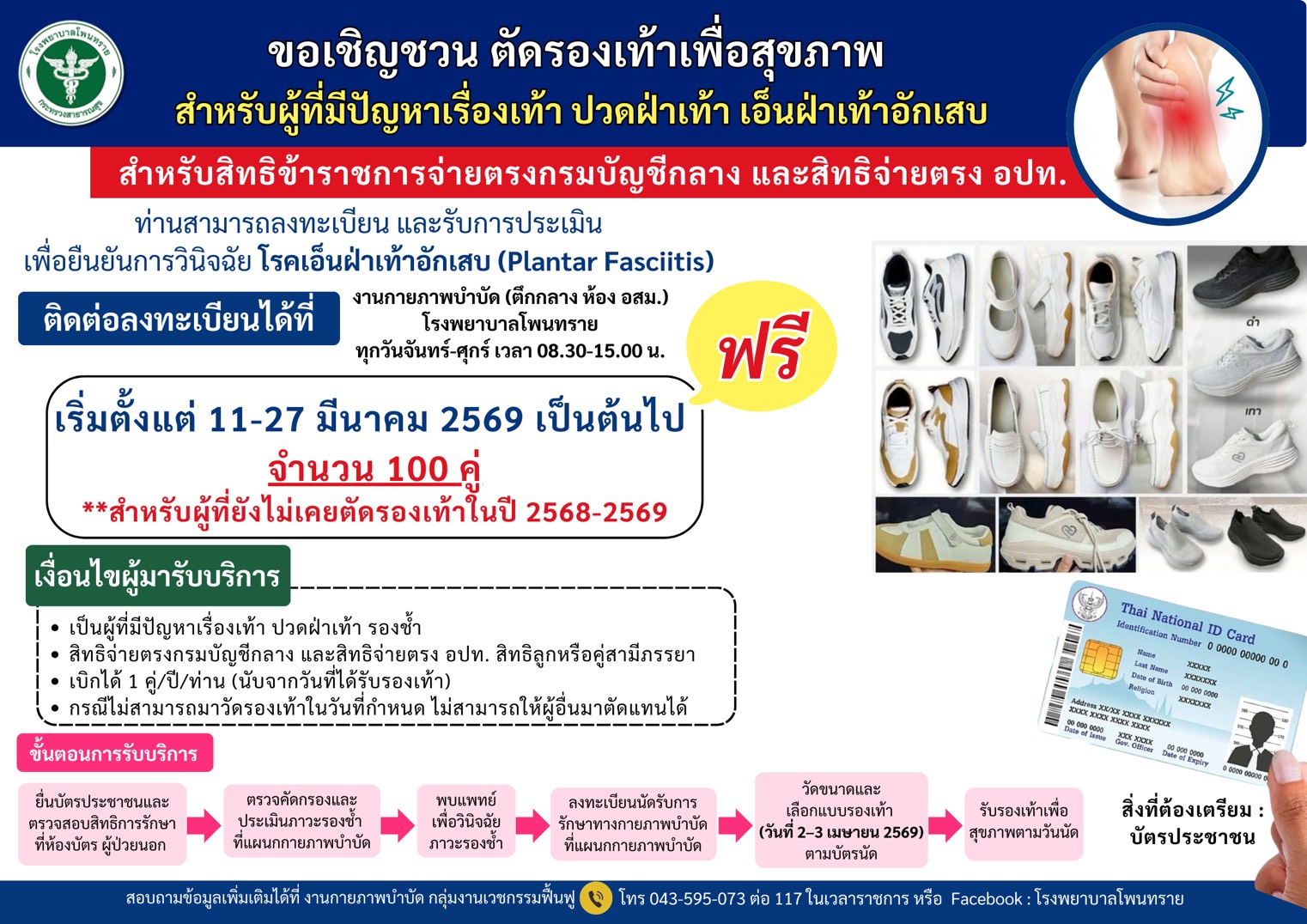 ขอเชิญเข้าร่วมโครงการตัดรองเท้าเพื่อสุขภาพ สำหรับผู้ที่มีปัญหาเรื่องเท้า เช่น ปวดฝ่าเท้า รองช้ำ