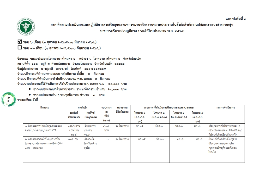 | 1.4 รายงานผลชมรมจริยธรรม รอบ 6 เดือน ปีงบประมาณ 2566 |